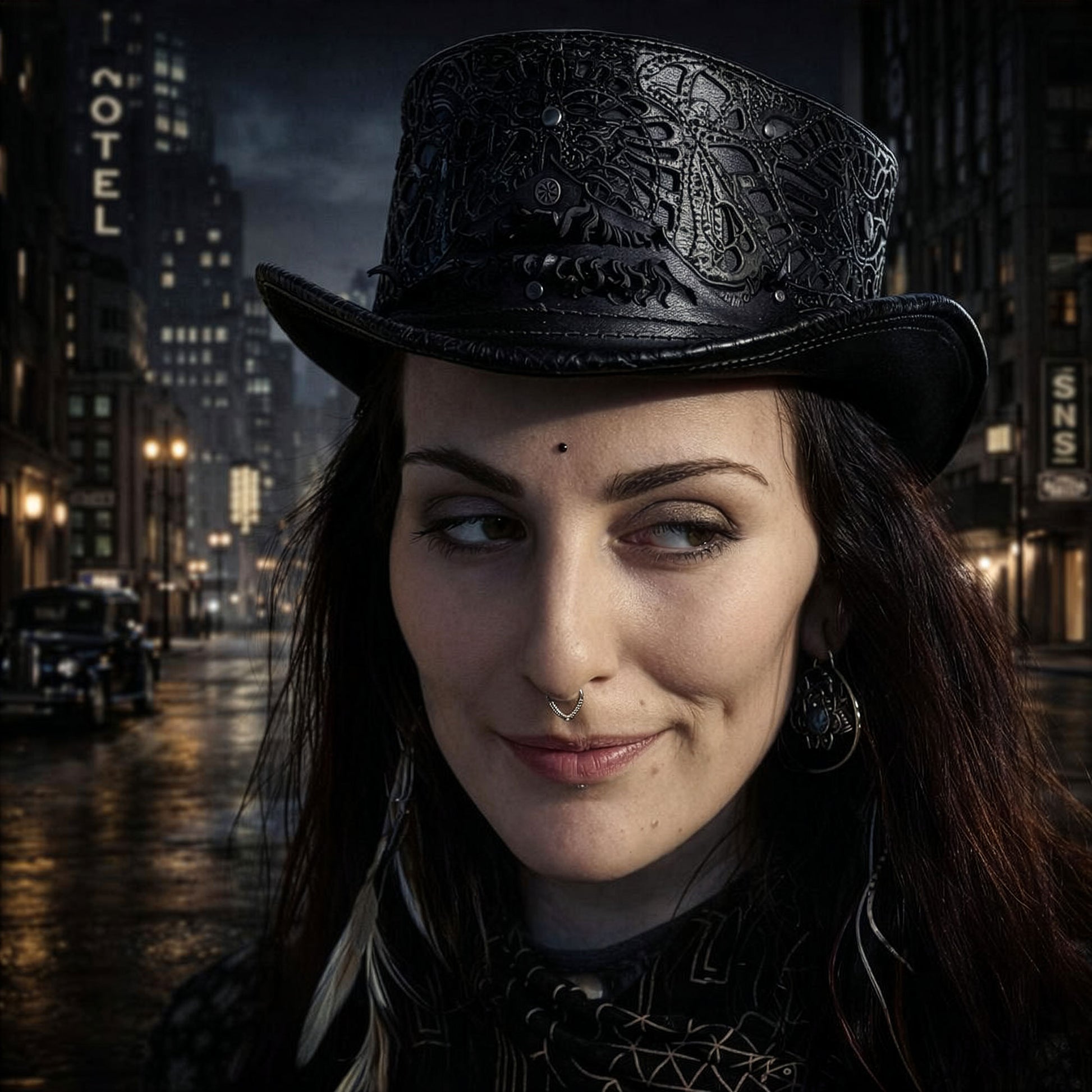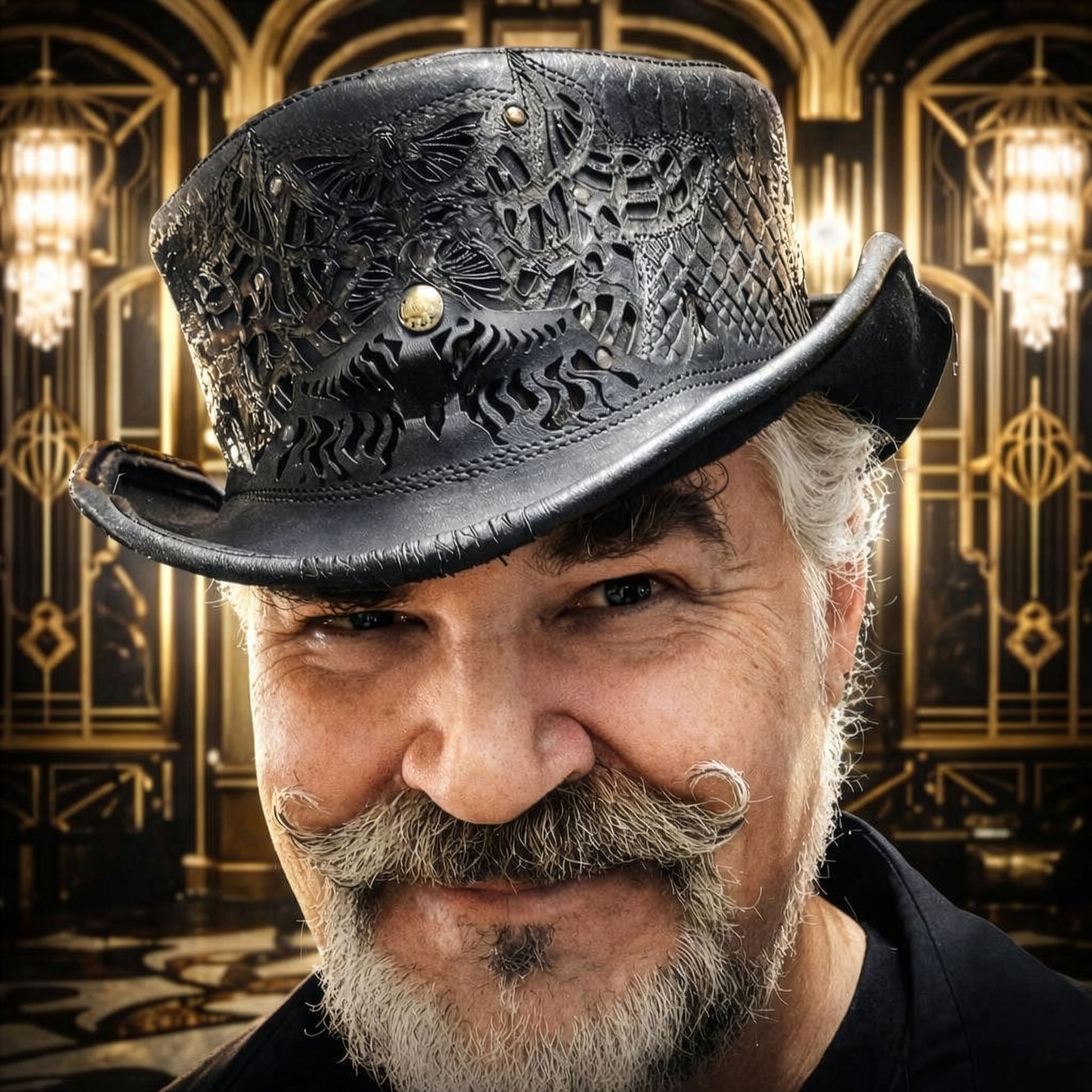 Inspired by our original Firefly Top Hat, the Daunting & Dapper blends over a century of top‑hat influences into a modern, wearable silhouette. Aurelius — our resident mad hatter and pattern alchemist — continues to refine this design with evolving filigree, engraved details, and a brim that adapts to any style.